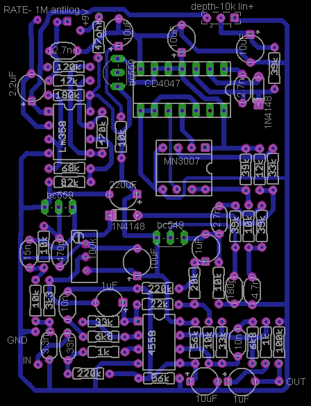 ho appena terminato il suddetto, ma il suono esce bello pulito, senza effetto. ho provato a regolare il trimmer da 100k ma non succede niente.