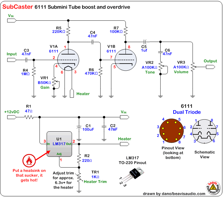dano/beavisaudio.com ,lo schema chiama una valvola 6111,ma io il layout l'ho modificato per una 12ax7....