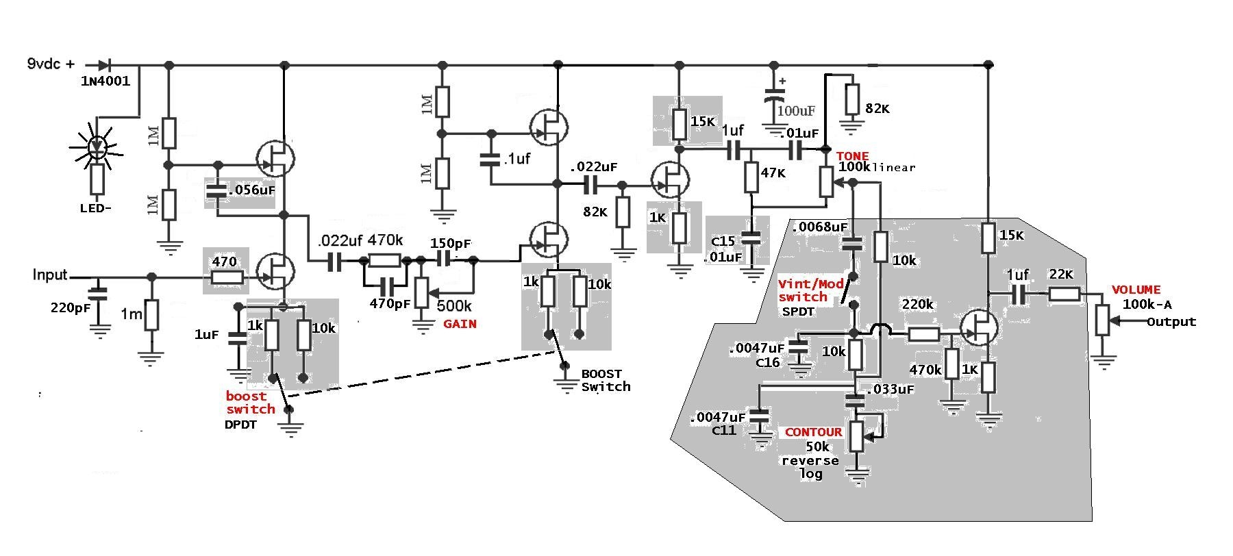 Niente di extraterrestre, ma potresti provare inserendo un tonestack completo, il controllo presence e uno swich per passare dal canale normal al brith a tutti e due insieme. Vedi un po' te...
