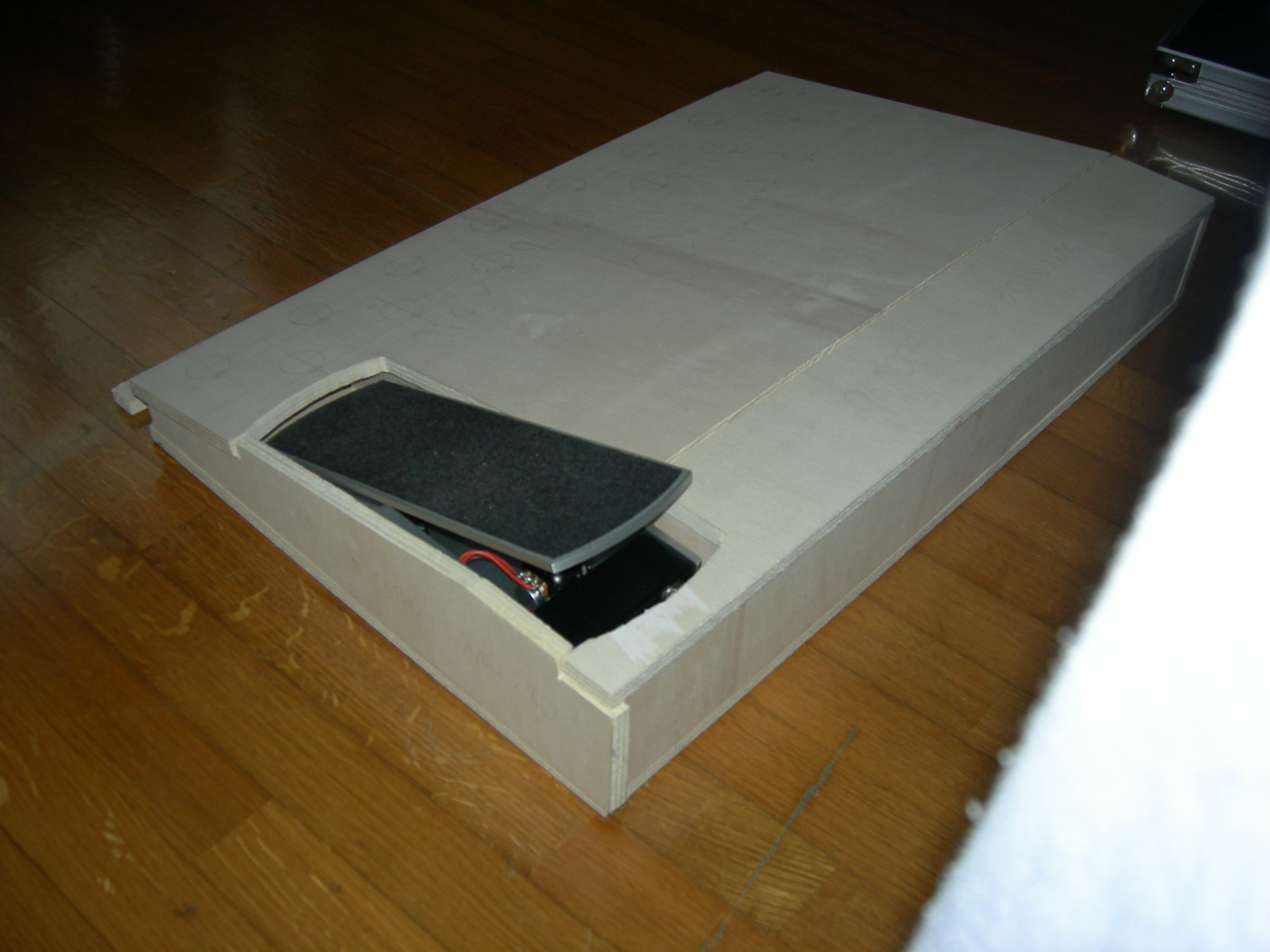 E soprattutto sono riuscito ad integrare davvero molto bene il pedale volume ernie ball. (nella foto è troppo incassato nel top, andrà sollevato a filo del piano superiore)