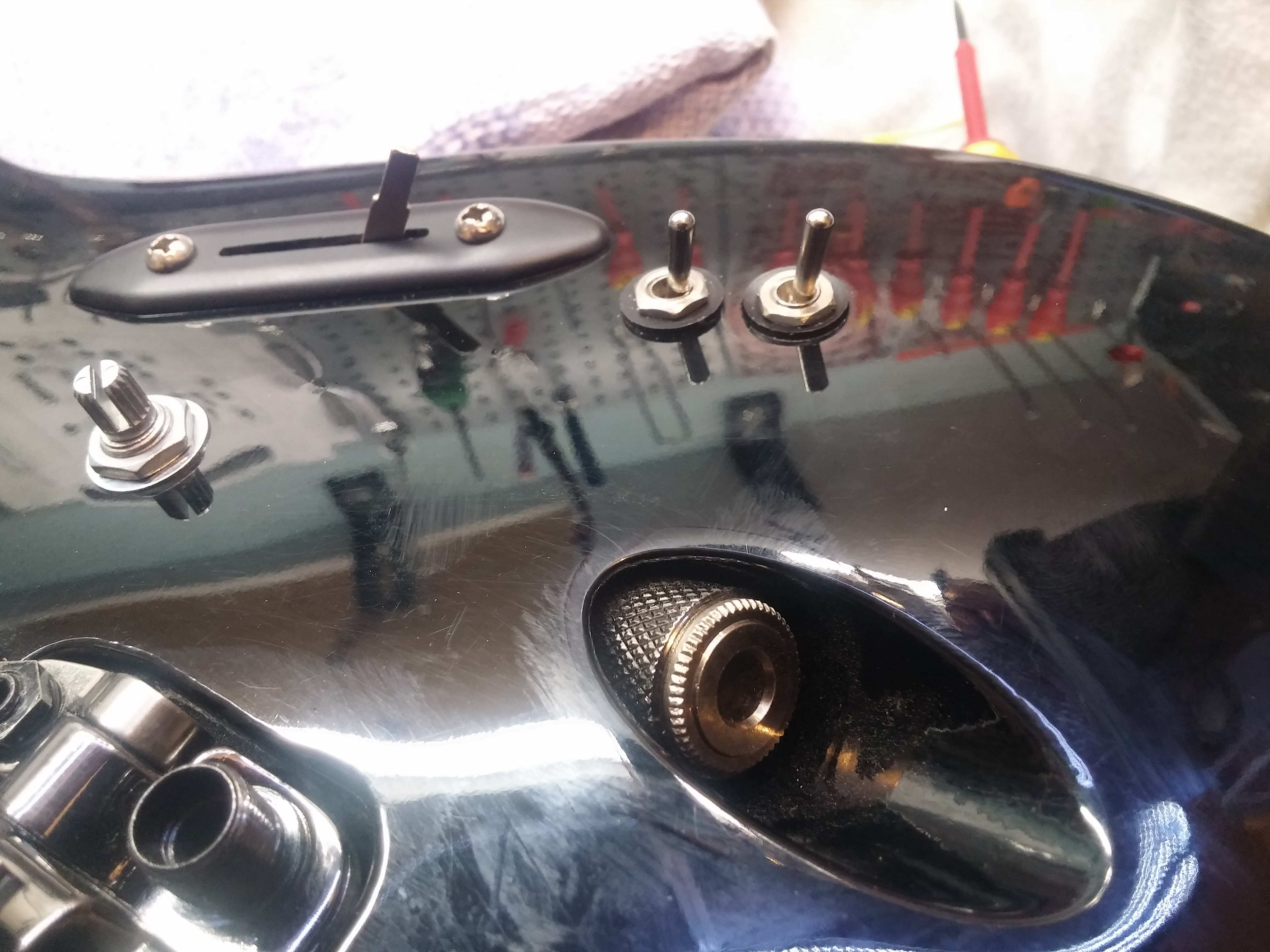 Per chi volesse cimentarsi nell'installazione di un piccolo buffer on board su questi tipi di chitarre, mi permetto di consigliare una soluzione per guadagnare più spazio possibile: E' NECESSARIO SPOSTARE QUEL DANNATISSIMO JACK!