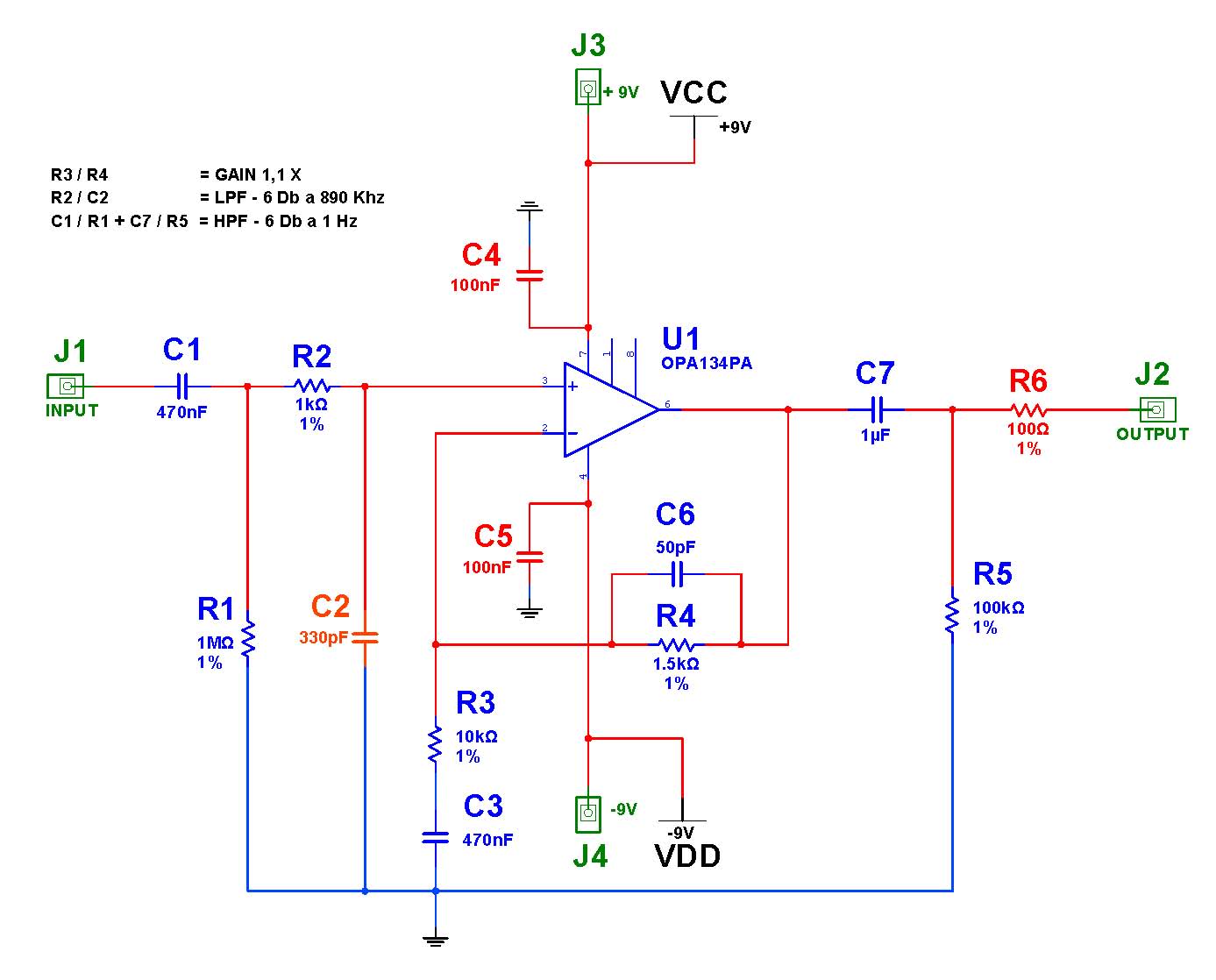 1 uF in entrata è messo solo per bloccare la DC. Forse era meglio mettere anche lì un 100 nF o anche un 10nF così da avere un passa alto in entrata che comincia a tagliare intorno ai 40 hZ. Quindi forse sarebbe meglio cambiare questo valore ad almeno 100 nF.alexradium ha scritto: ↑17/03/2020, 11:59visto che hai comunque usato condensatori in entrata e uscita,la duale è overkill come si dice,comunque,poi perchè 1uF in entrata e 100nF in uscita?