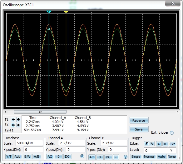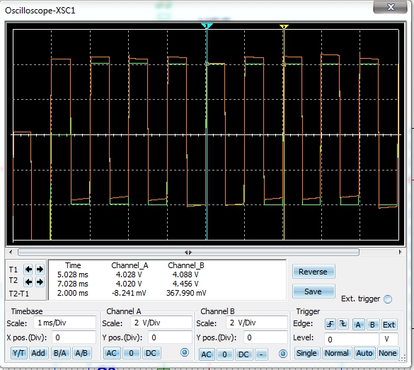 Esaminando l'onda quadra il mio simulatore non è congruo quando la scala dei Volts / Divisione. Quindi non è da prendere con le pinze: