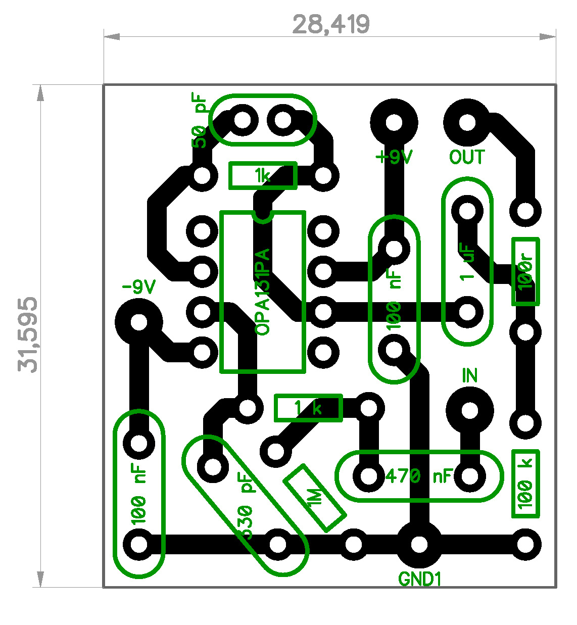 Ho voluto evitare qualsiasi forma di interferenza. Anche se può sembrare uno spreco fare altri 2 fori ed aggiungere un cap su pcb così piccole e potrebbe non servire mettere un 100 nF tra i pin dell'alimentazione duale dell'opamp.... Male non gli fa di sicuro presumo.