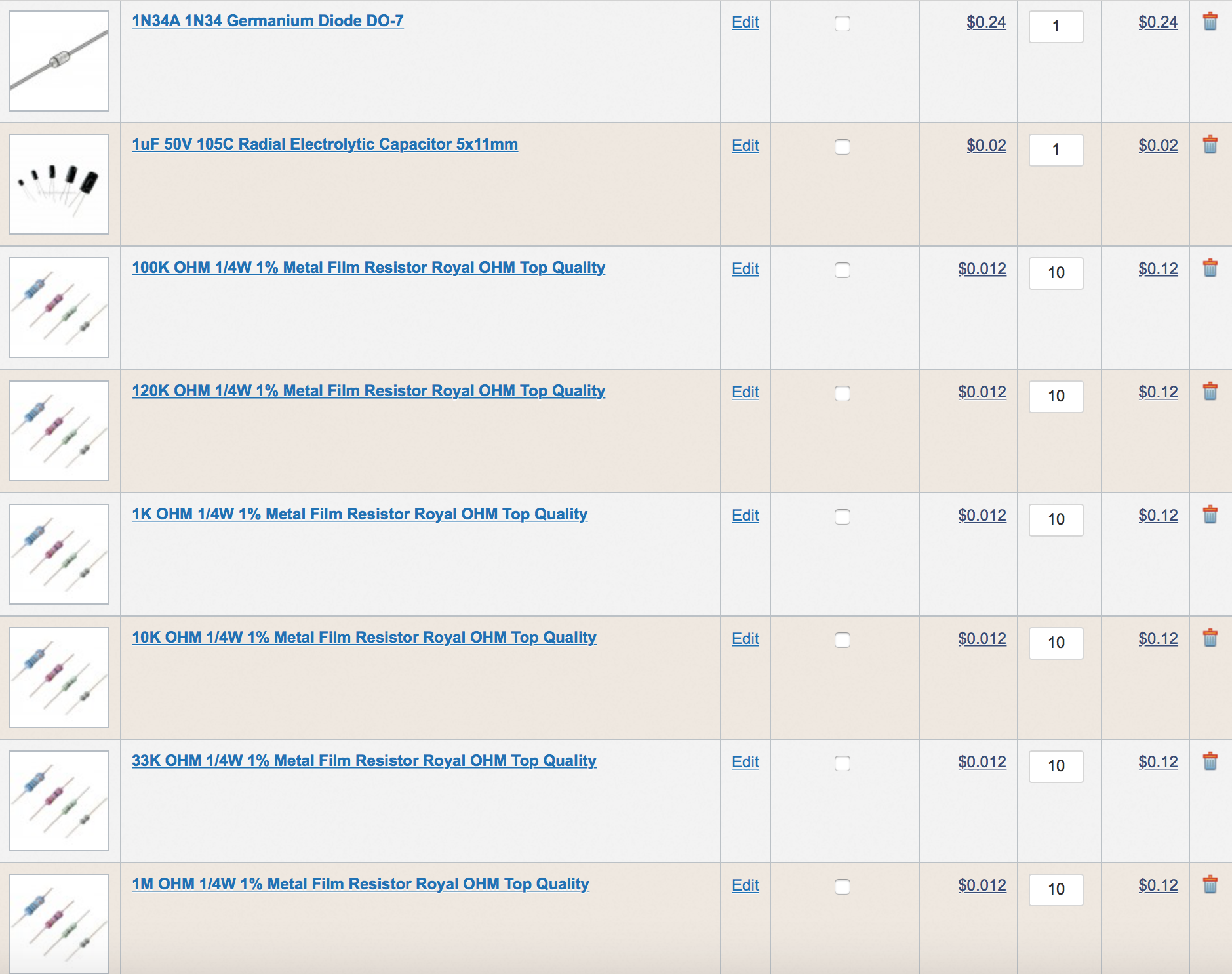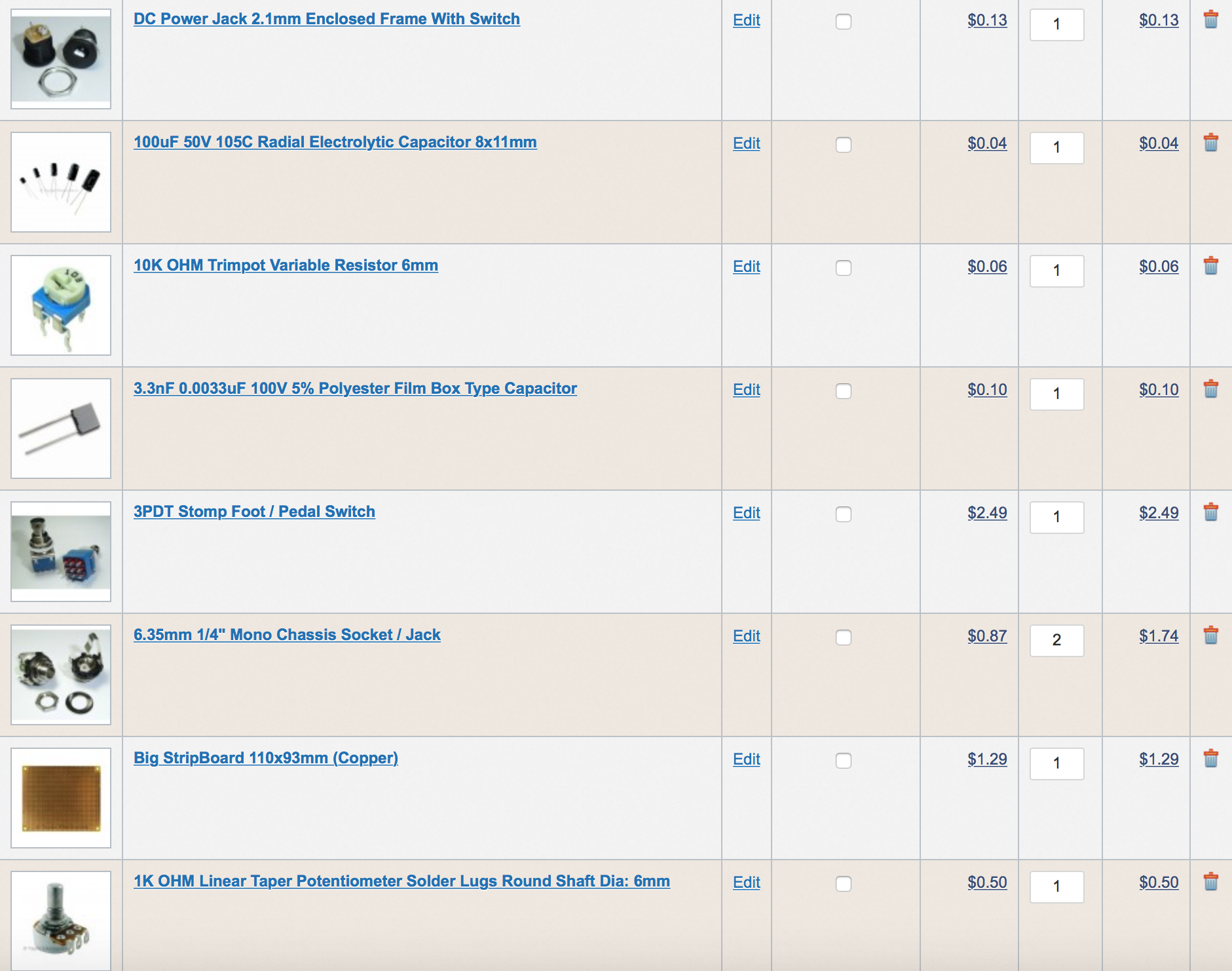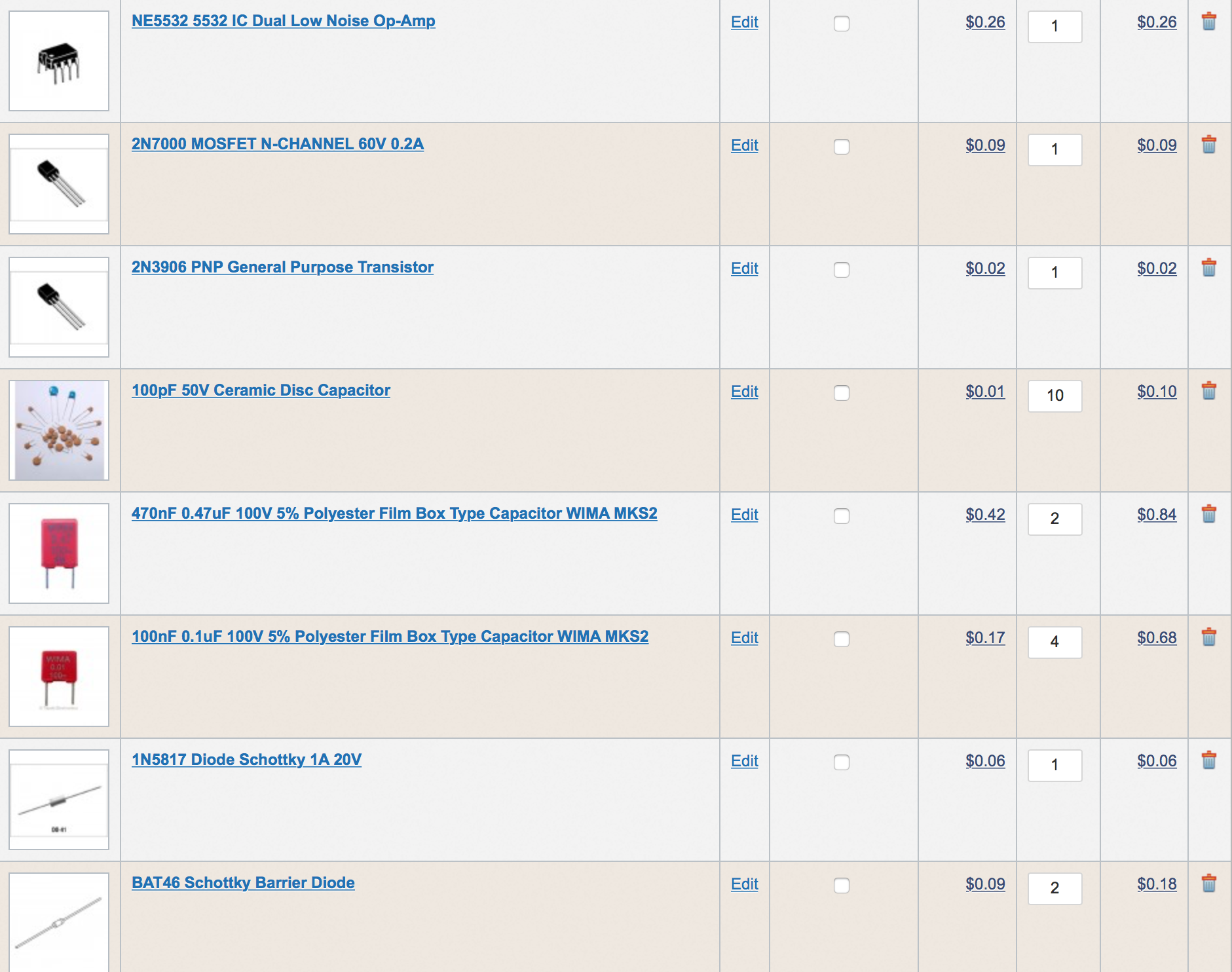 Ti consiglio vivamente di prendere un socket ic 8 pin per non saldare direttamente l'integrato NE5533, e una striscia di socket pin, per non saldare direttamente nemmeno i transistor. Ti eviti il rischio di rovinarli saldandoli, e certe volte può essere utile fare delle sostituzioni per avere una resa diversa del pedale. In più avere dei socket pin ti permette di sperimentare. metti che vuoi variare l'equalizzazione o il gain, puoi saldare dei socket pin al posto di una resistenza, condensatore o diodo e provare valori e tipi diversi. E da lì partono tutte le modifiche e le aggiunte. Ho davvero pochi pedali che ho fatto uguali allo schema originale perché ho spesso aggiunto un switch o un pot.