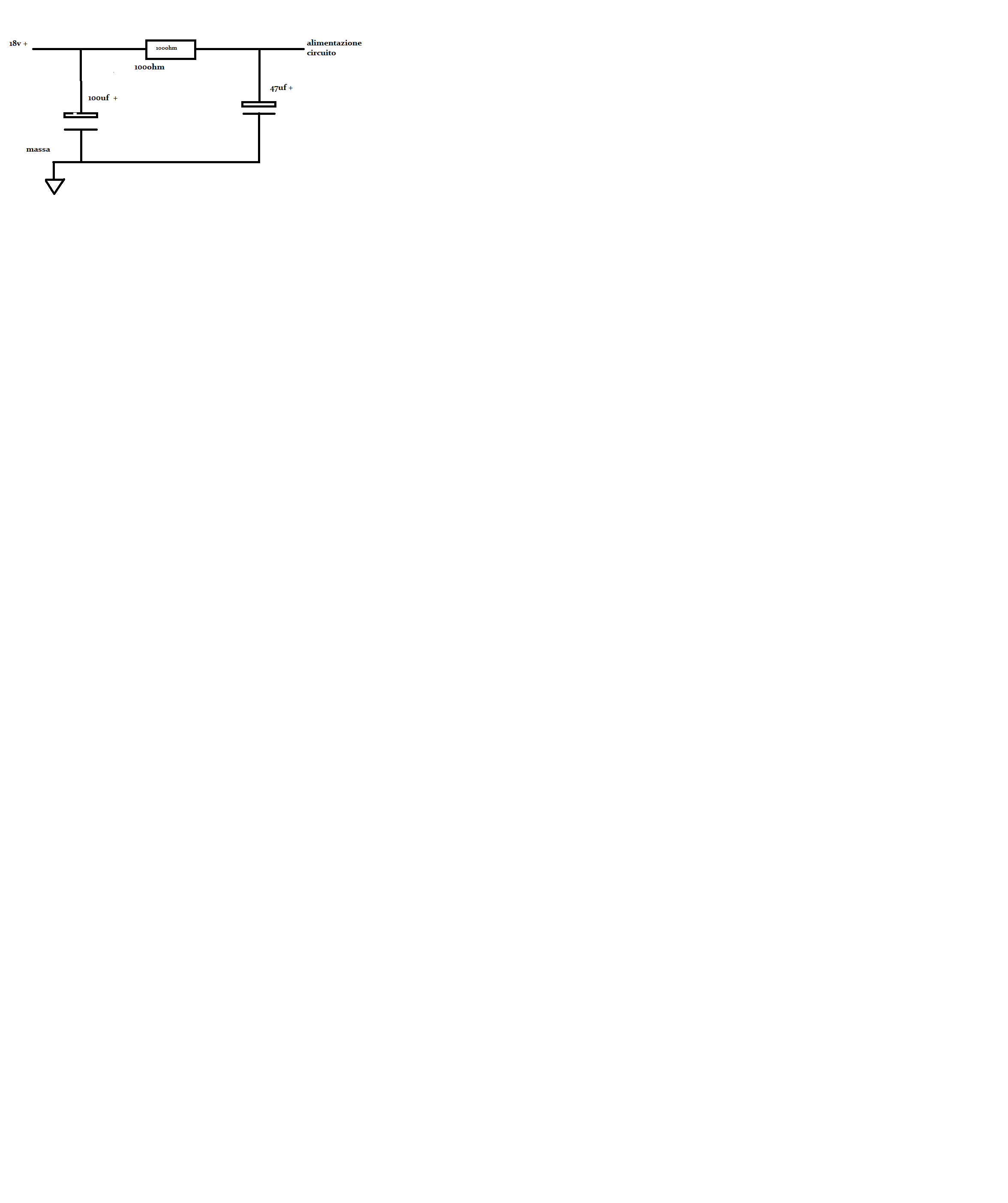 Ho capito la funzione di questo filtraggio ma non so bene come realizzarla di preciso, non c'è qualche foto o un layout su stripboard?andromeda ha scritto: ↑26/08/2018, 10:01Ciao per il tuo problema non so se hai filtrato bene l 'alimentazione ma ti consiglio delle accortezze perche il tuo problema potrebbe dipendere dal ramo dell alimentazione.Sul cavo alimentazione 18v metti un condensatore da 100uf verso massa seguito da una resistenza da 100ohm seguito da un altro condensatore da 47uf verso massa.