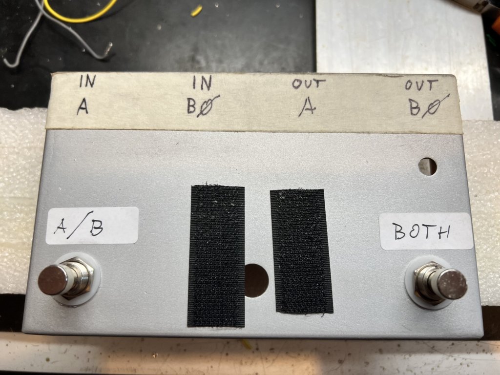 Realizzazione molto cruda e barbara riutilizzando uno scatolotto che avevo da tanto tempo. Ma è semplice, funziona benissimo e il costo che ho dovuto affrontare è stato solo quello per il reperimento di un solo stomp-switch 4PDT.