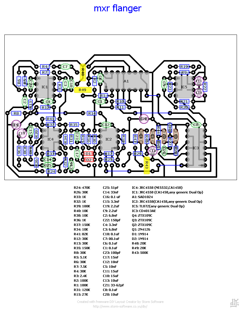 dopo lungo tribolamento avrei praticamente terminato il layout dell'Mxr Flanger,quello con la Sad 1024.