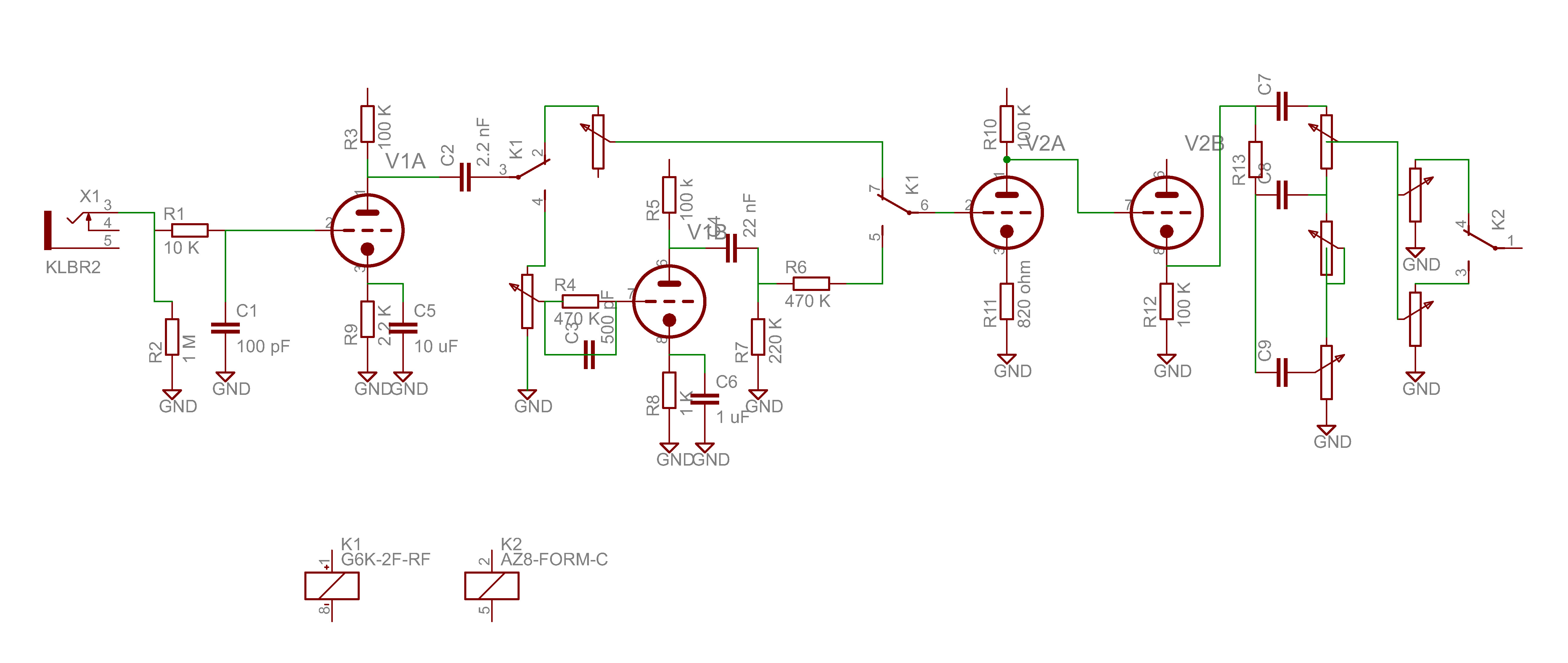 I primi due potenziometri possono restare connessi al primo triodo senza essere switchati.