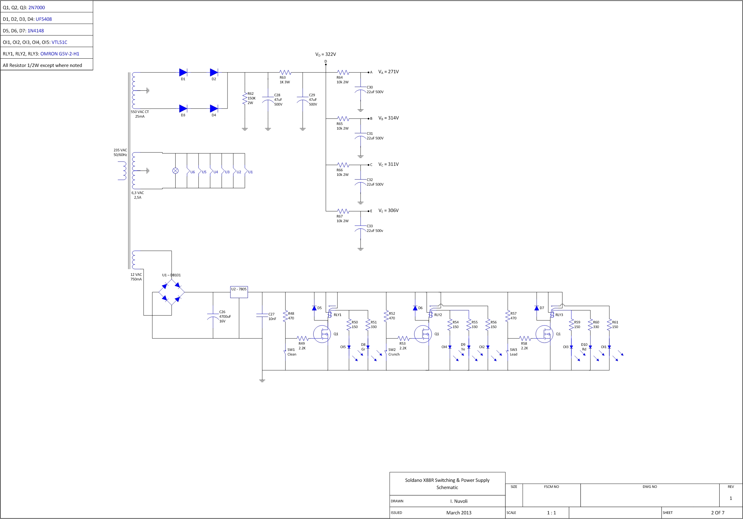 Dopo una pausa che mi ha portato a pensare di più alla chitarra che all'amp mi son finalmente deciso di partire con un progetto che era da parecchio che mi girava per la testa: x88r soldano. A seguire di un giro su sloclone mi trovo ancora con un dubbio riguardante il trafo. Nello pfd allegato vi sono per l'appunto due schemi; il primo al cad (rivisto), mentre il secondo dovrebbe essere quello originale. Partendo da quest'ultimo vedo che il ct è a gnd, quindi la rettifica sarà a doppia semionda, Vo sul primo cap dovrebbe essere Vct/1,4 (confermate?). Il primo schema mostra come il ct non sia collegato e quindi la rettifica avvienga con il ponte di graetz, Vo sempre sul cap dovrebbe essere Vct*1,4 (confermate?)