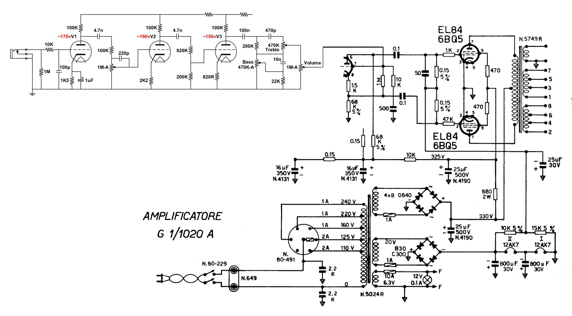 Tra le mod mi mette una res da 47K su una delle G1 che ne aveva una da 1K (lo strano è che l'altra valvola ne ha già una da 47K) chissà perché era stato fatto in questo modo, visto che il costruttore è Geloso son sicuro che un buon motivo ce l'aveva di sicuro