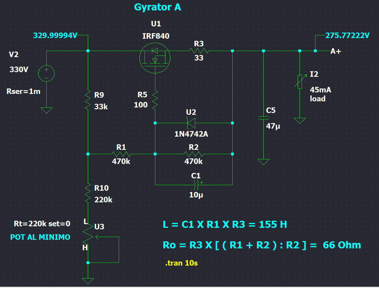 Il fatto che la tensione di uscita fluttui in accordo con la tensione di ingresso, nelle mie intenzioni, non è un problema, lo stesso fa il Gyrator