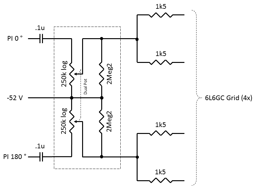 Con questo, senza interruttore, se si ruotano tutti e due i pot in contemporanea si ha l'effetto PPIMV, se invece si gira uno dei due verso massa si sbilancia il PP fino a quando una delle due valvole viene esclusa e si ha l'effetto SE