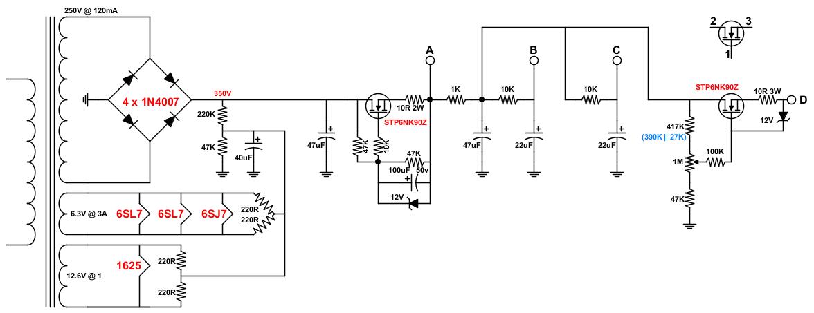 nella migliore delle ipotesi (2 x ecc83 + 1 x ecc88), a 6.3v per il pre servono 965mA
