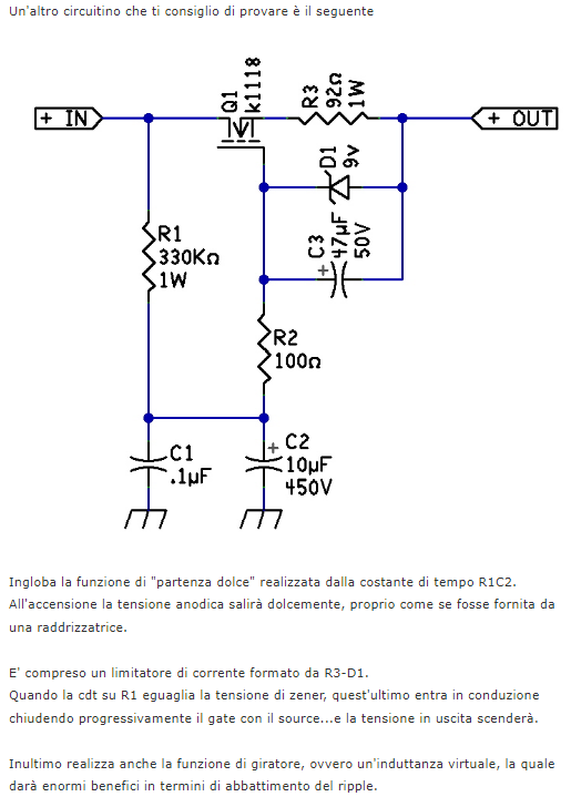 Come dicevo a Domenico su Whatsapp ecco lo schema di un Gyrator con aggiunta la funzione di Soft Start