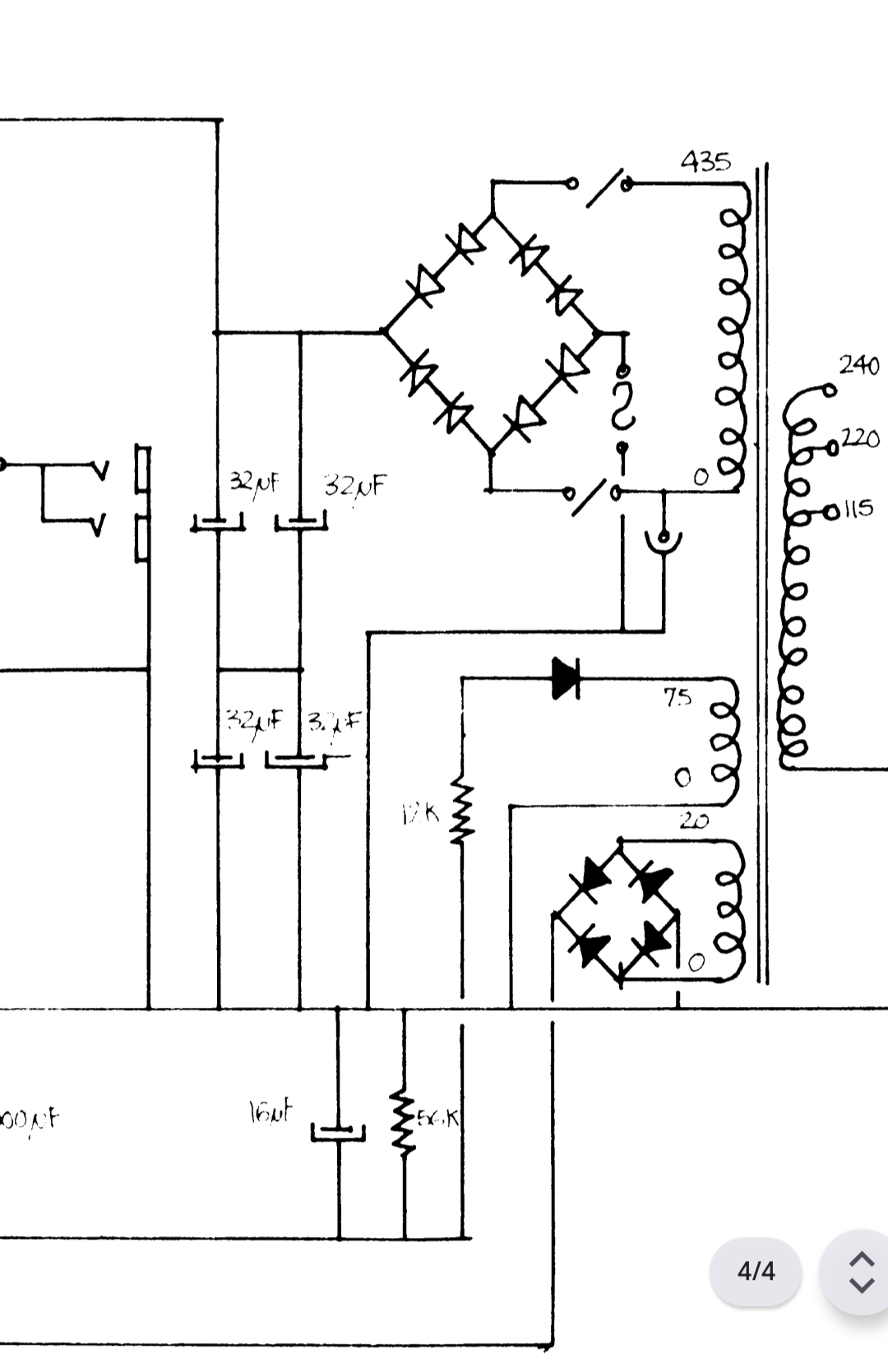 Tutto secondo valori tranne la sezione in foto...valori molto più alti per gli elettrolitici (220uf invece che 32uf) e un raddrizzatore con i soliti 4 4007 invece che quel ponte a 8 che non capisco.