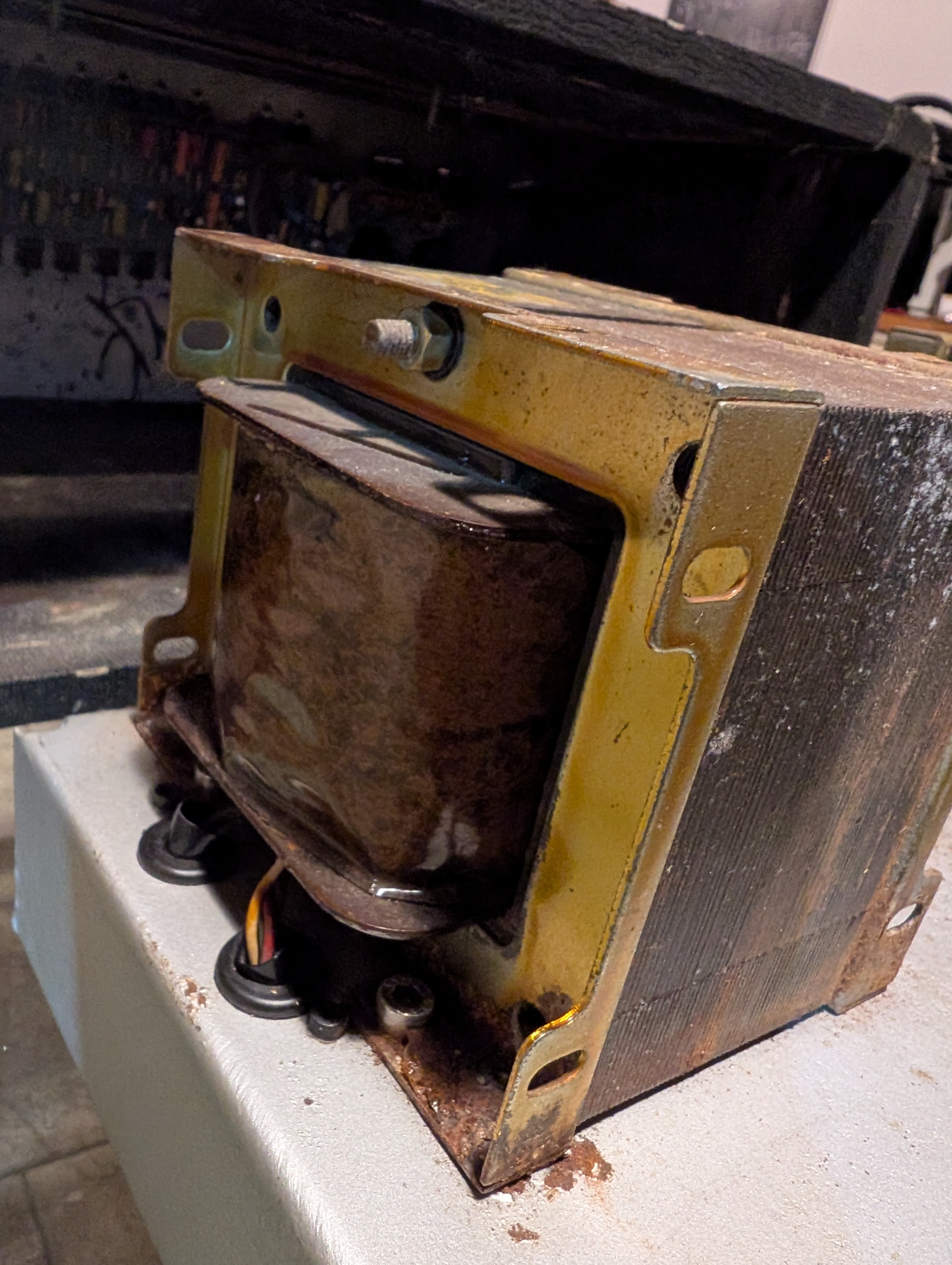 Per prima cosa darei una passata con un panno ruvido alla parte lamierini dei trasformatori (quelli della choke non sono a vista), dopo passerei a ricoprire con un doppio o triplo strato di scotch di carta i lamierini a vista, quindi con una piccola spazzola (acciaio o ottone/bronzo) ed aiutandoti con una spugna abrasiva da cucina (quelle verdi, meglio se della scotch) strofinerei bene le parti arrugginite dei trasformatori e del cavallotto di fissaggio della choke