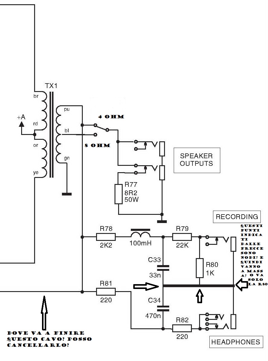 2) ci sono delle domande scritte sullo schema che mi hai postato,ed ho scritto la disposizione dei 4 e 8 ohm, potresti dargli un'occhiata??