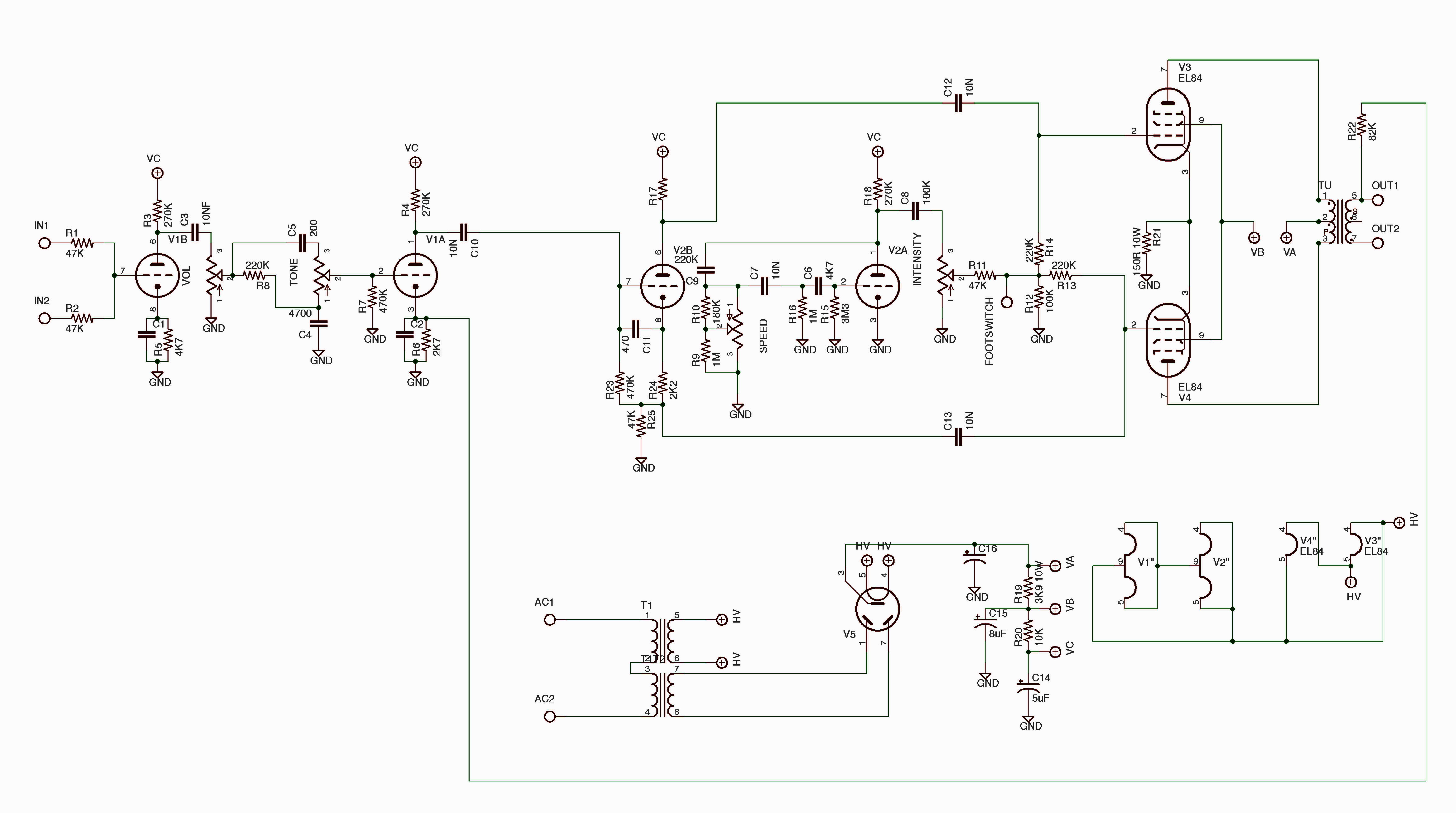 per quanto riguarda lo schema mi sa che dovrai fare un lavoro di back engineering e disegnartelo, come ho dovuto fare io per il Super Deluxe 50 R e come ha fatto Johnnyl per il suo Venus G20
