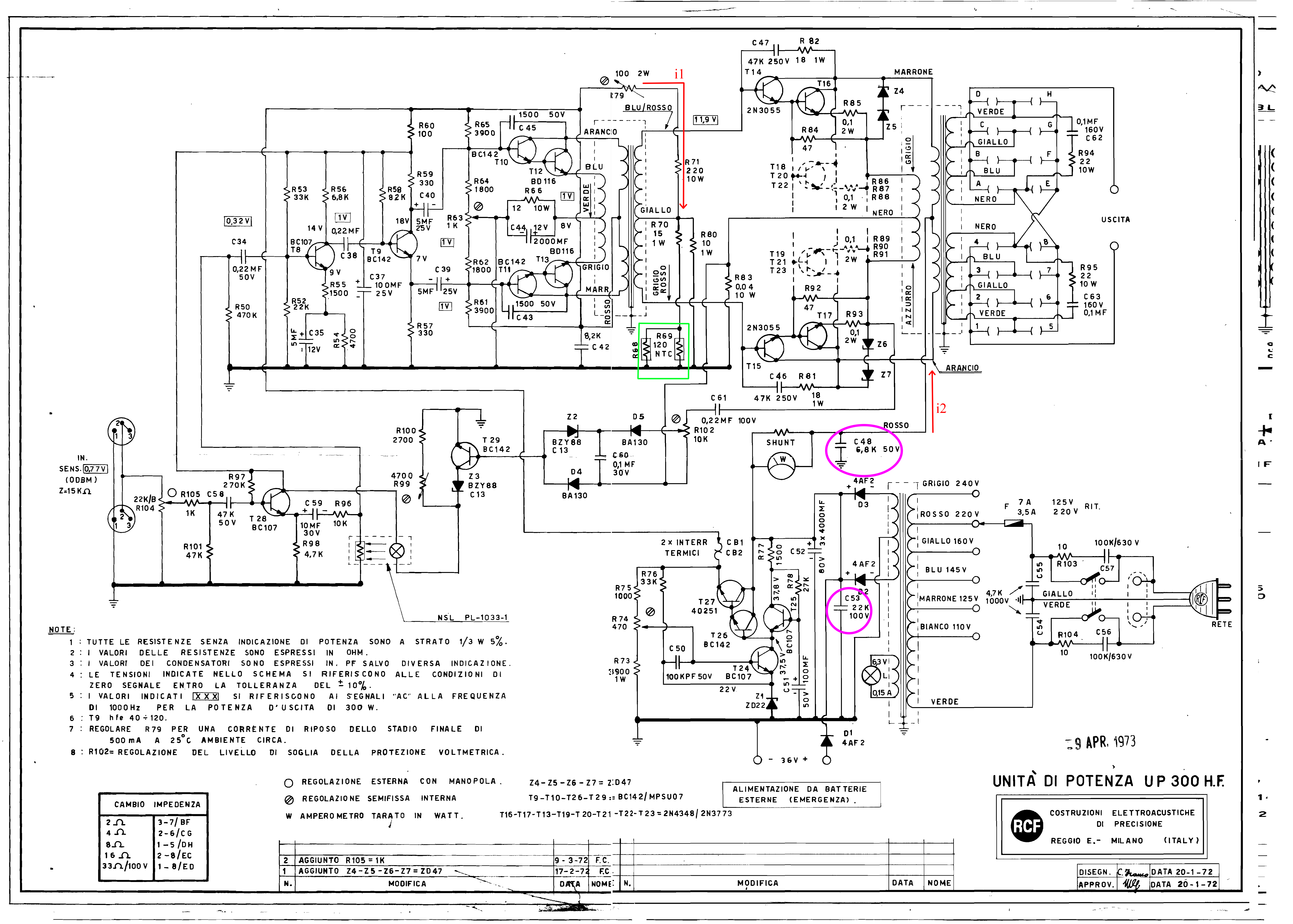 mi è capitato tra le mani un vecchio stadio di potenza RCF UP 300 H.F. da 300 watt che però ha qualche problema con l'uscita.