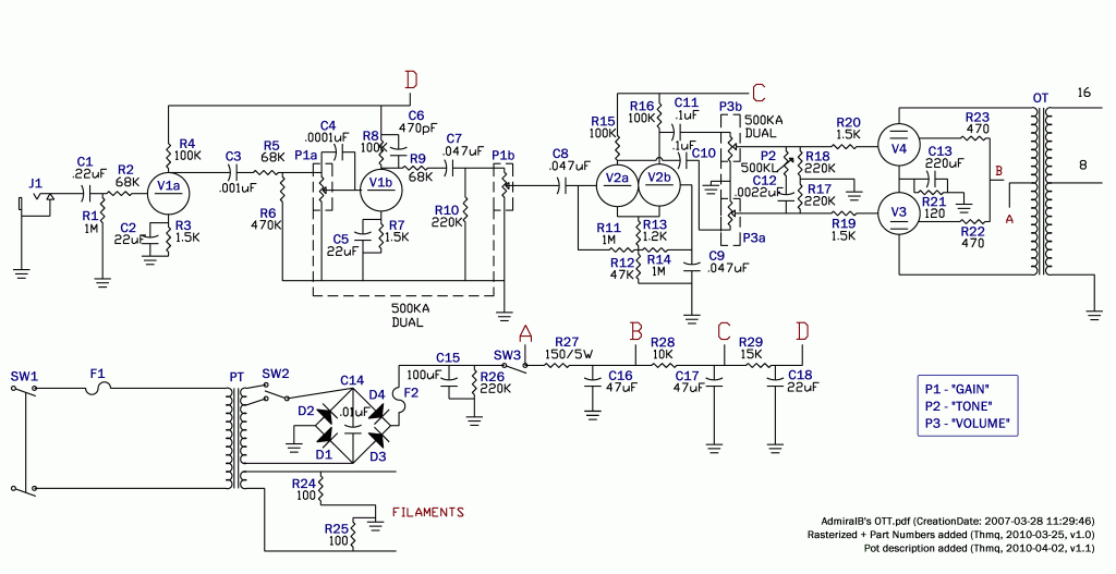 Inoltre ho un altro problema che finora ho ritenuto "minore": ho notato che il pot del tono è quasi inefficace, dallo schema vedo che devo collegare solo 2 pin, ma quali??